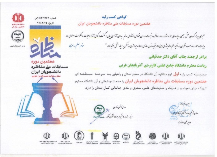 کسب رتبه اول تیم مناظره دانشجویی مرکز آموزش علمی کاربردی فرهنگ و هنر ارومیه